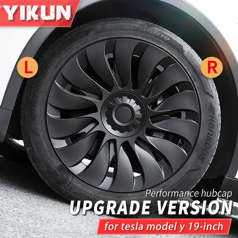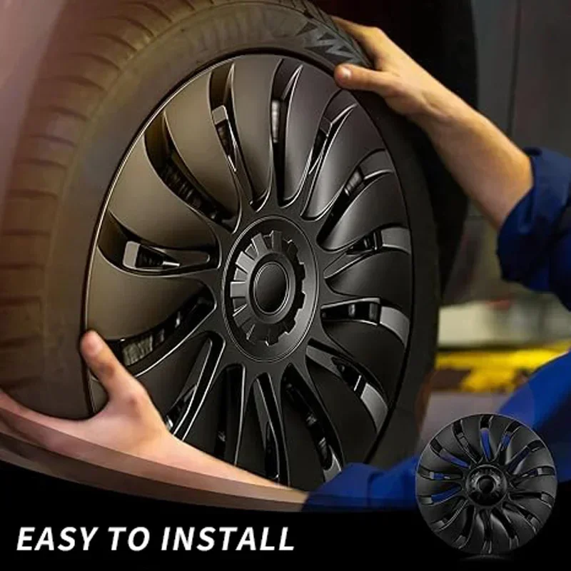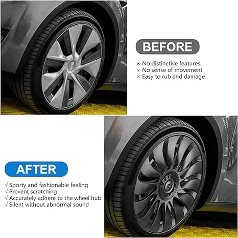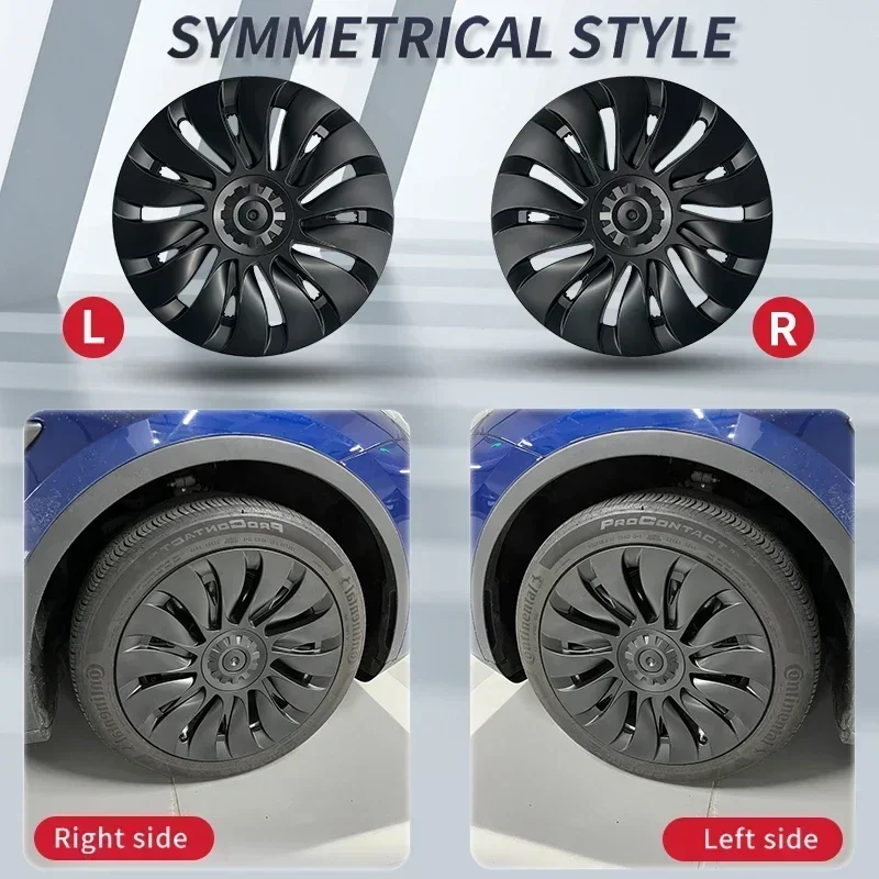 “4PCS/1PCS 19″ Performance Hub Cap Set for Tesla Model Y 2024 — full rim coverage replacement wheel caps, enhancing aesthetics and protecting OEM wheels.”