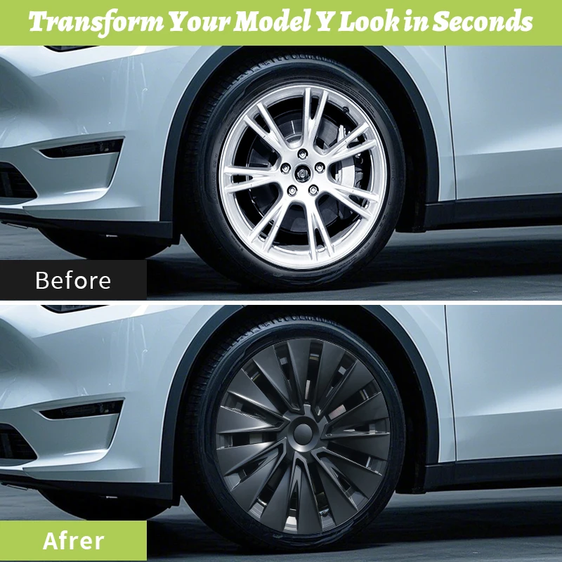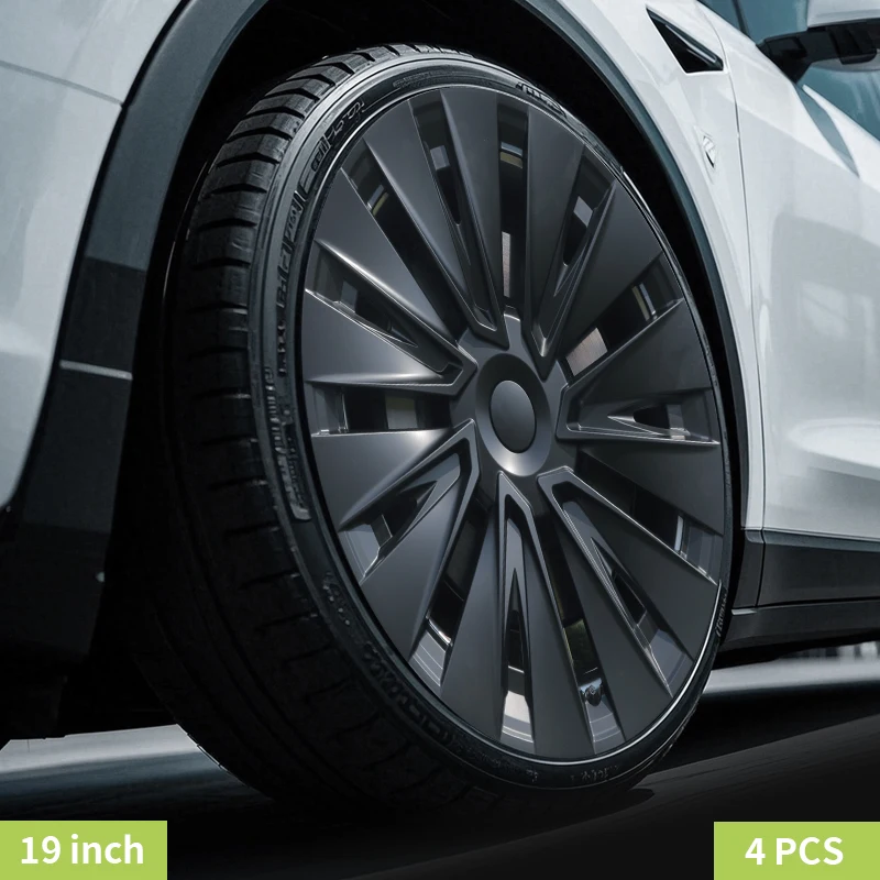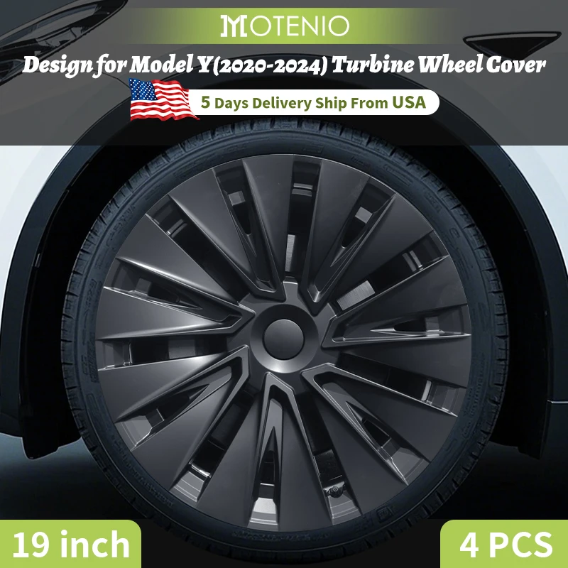 4PCS turbine-style wheel hubcaps for Tesla Model Y (2020–2024) – 19-inch full rim covers for enhanced performance and style.
