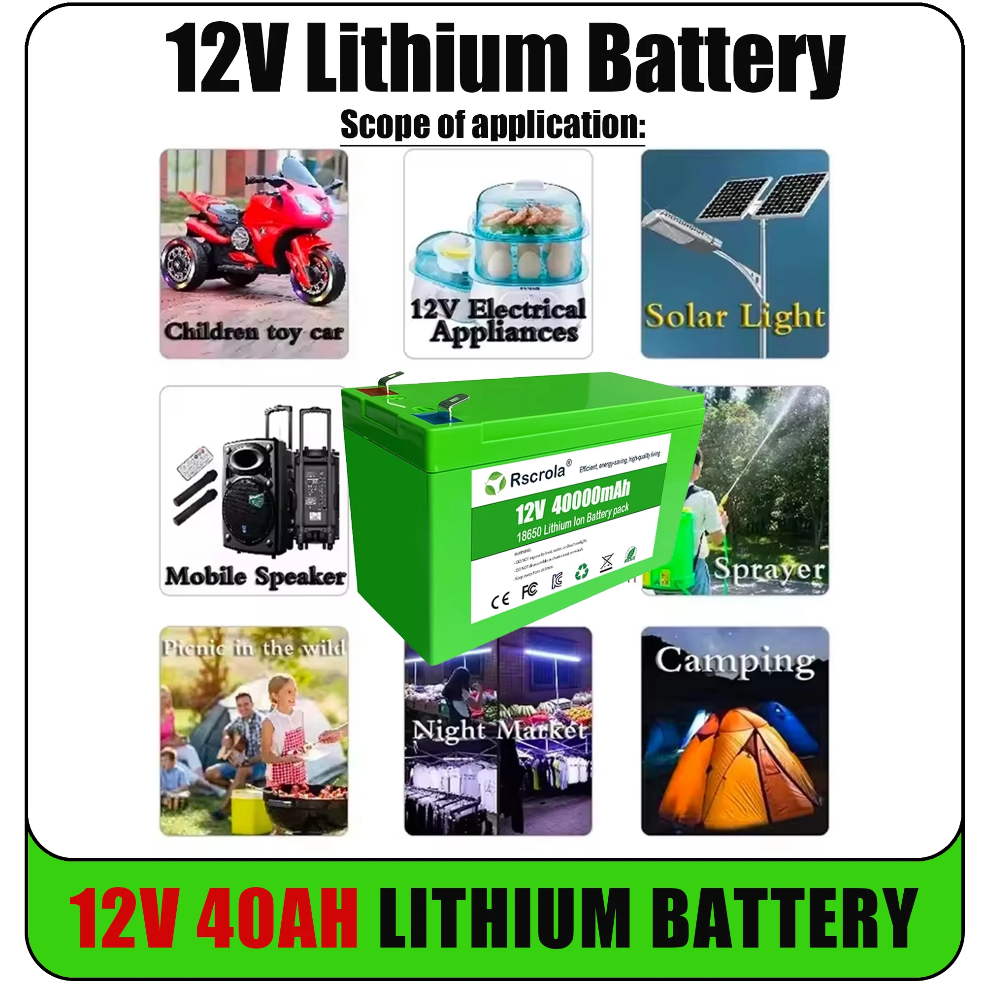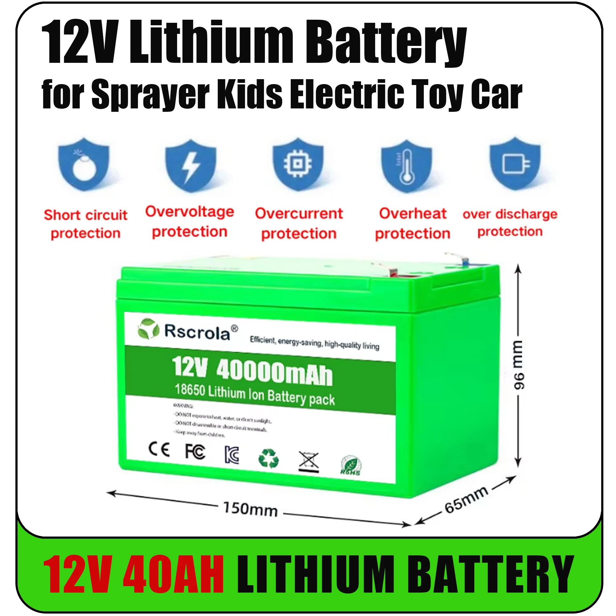 12V Li-ion 40Ah 30Ah 20Ah 18650 Lithium Rechargeable Battery Pack for Sprayer Kids Electric Toy Car Scale Access Control+Charger