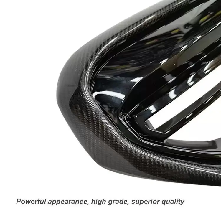 Transform the front of your BMW 5 Series G30 (2021–2023) or F90 model with this sleek black carbon fiber grille. Inspired by the aggressive and sporty design of the M5, this grille adds a bold,for BMW 2021-2023 5 Series G30 F90 model, this black carbon fiber grille-style front grille is styled in the M5 fashion high-end look to your vehicle while maintaining perfect fitment and quality.