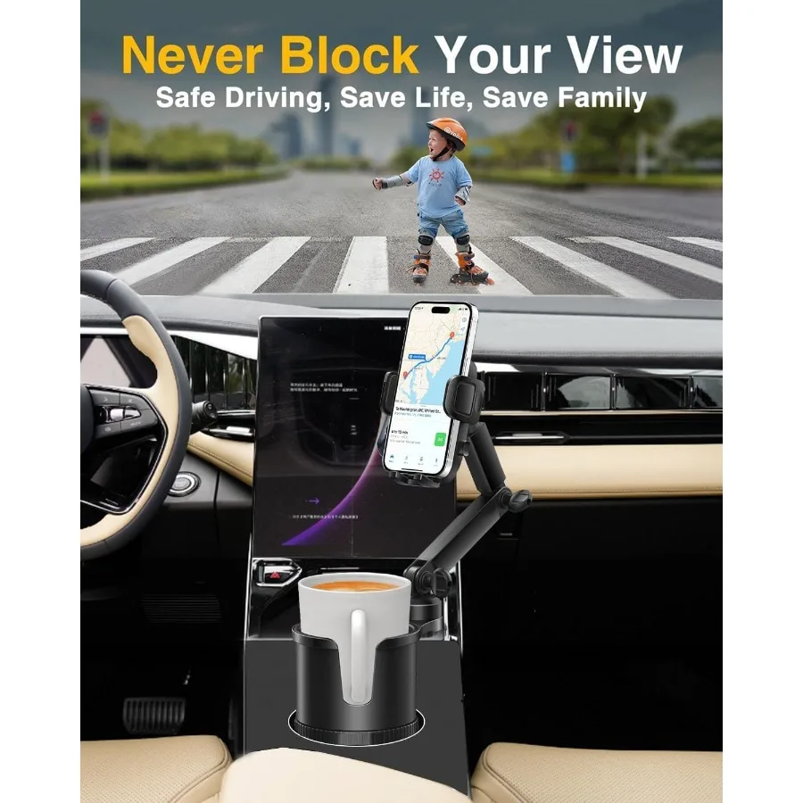 Cup Phone Holder for Car with Expandable Base 2 in 1 Adjustable Hands Free Cell Phone Holders Car Cupholder Mount Friendly Fit