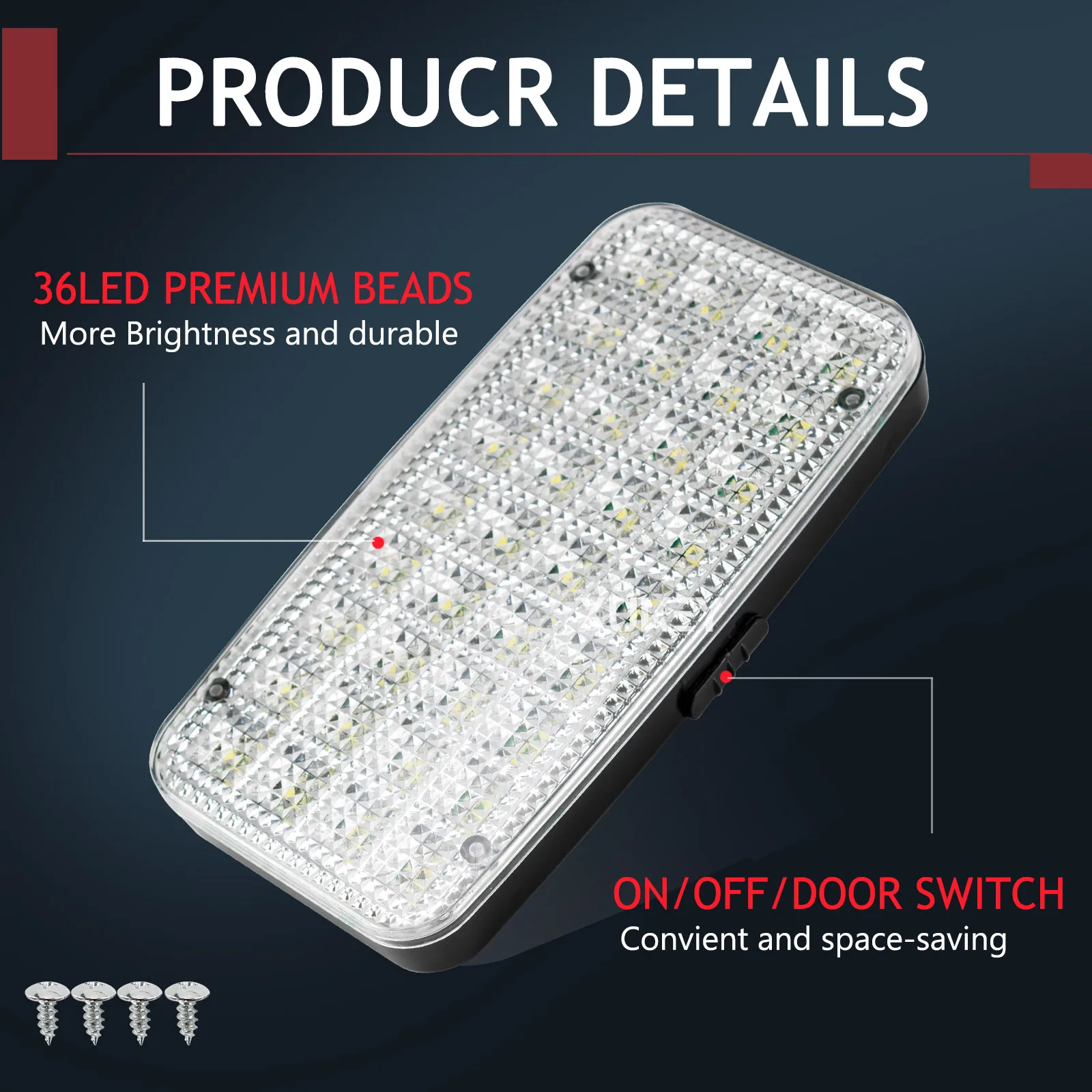 12V 36-LED car interior light bar – bright white roof dome lamp for cars, boats, caravans, campers, trailers, trucks, and lorries.