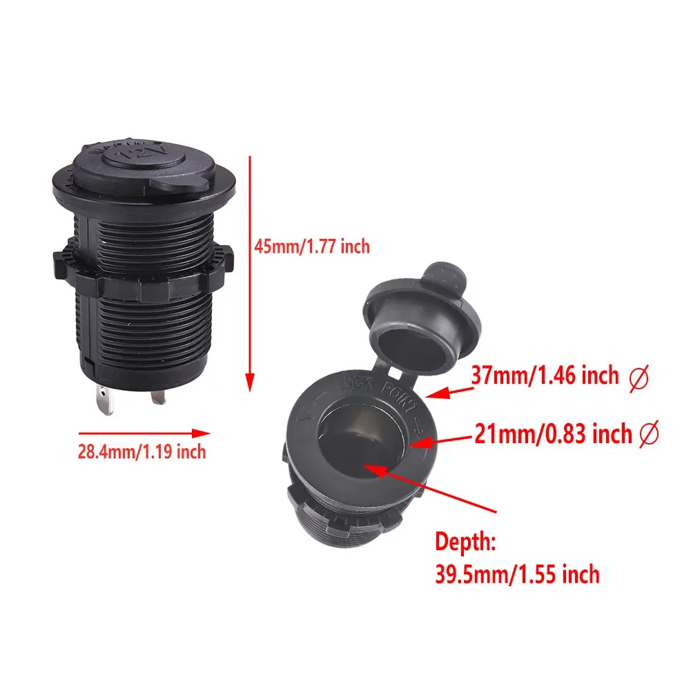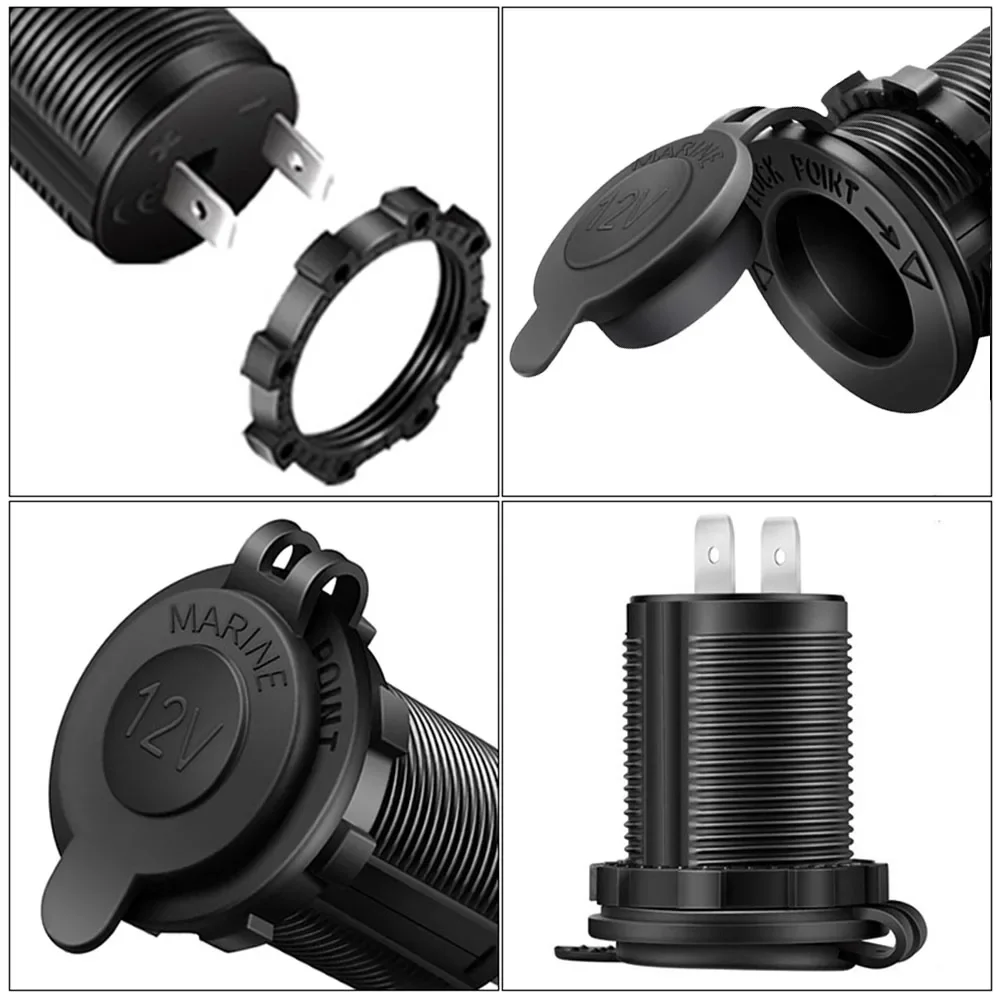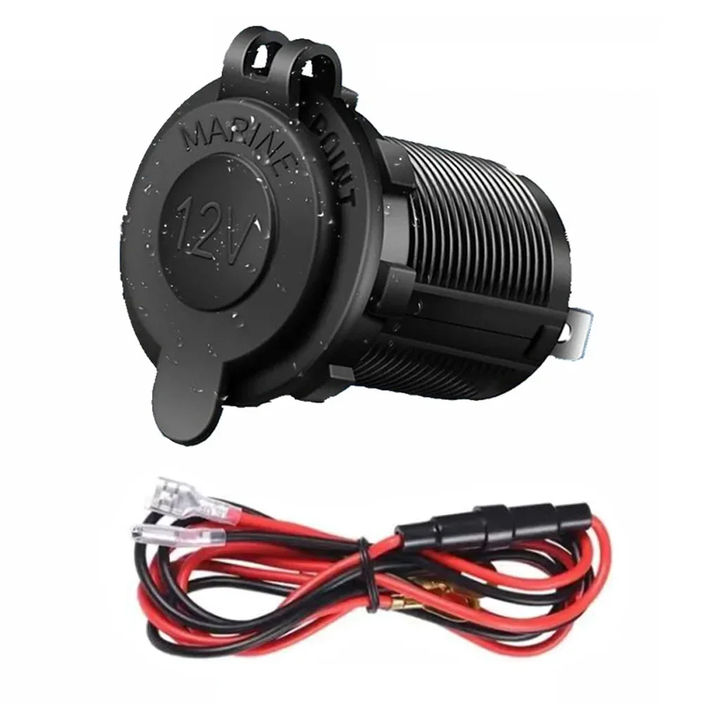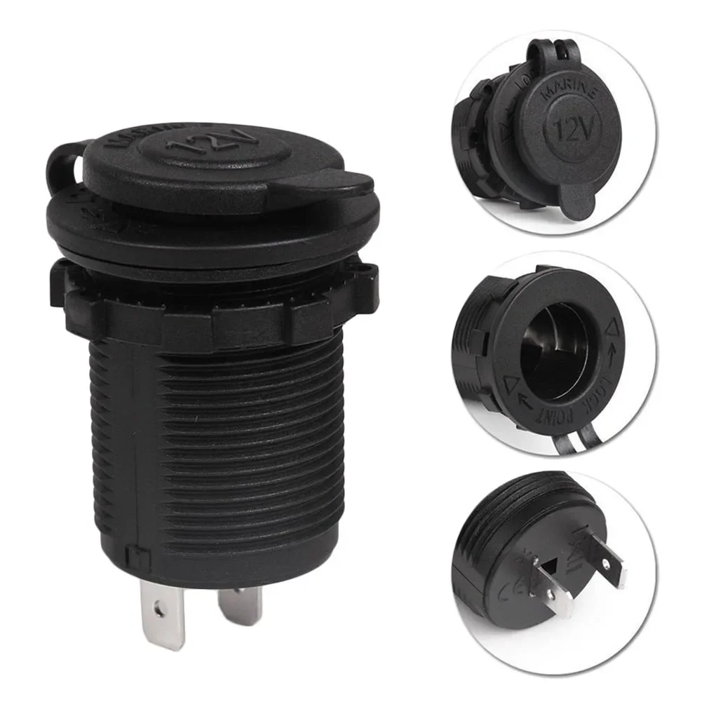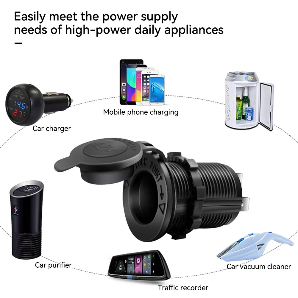 “12V Waterproof Car Cigarette Lighter Socket — durable power outlet for cars, boats, motorcycles, and tractors, perfect for interior installations and powering accessories.”