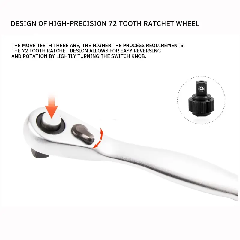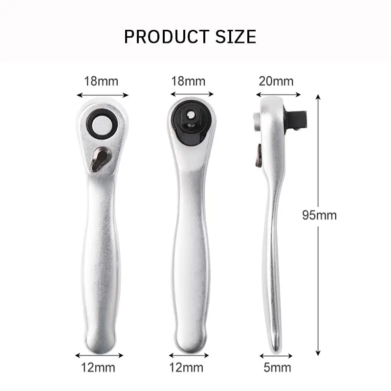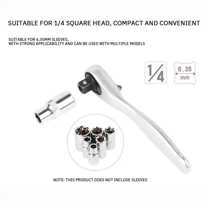 “1/4″ Square Ratchet Socket Head Wrench (6.35 mm) — small mini quick wrench with 72-tooth mechanism, ideal for hand repair, precision work, and tight-space applications.”