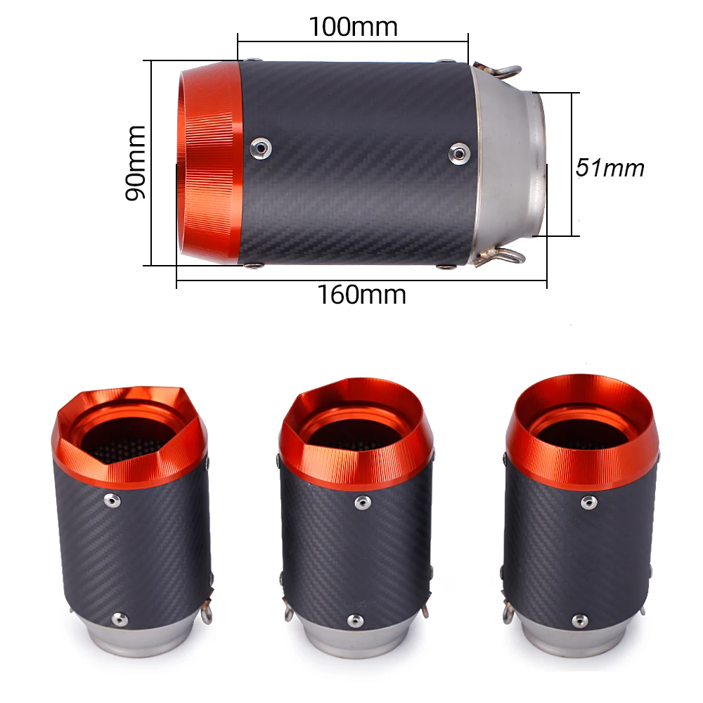 Upgrade your motorcycle with the 51mm GP Carbon Fiber Motorcycle Muffler, designed for universal slip-on installation. Compatible with bikes including Kawasaki Z900, FZ6, RC390, and S1000XR, this muffler provides excellent performance and a race-inspired look. Crafted from premium carbon fiber and CNC-machined stainless steel, it ensures durability, heat resistance, and lightweight construction. The GP-style design optimizes exhaust flow, enhancing throttle response and engine performance. Installation is straightforward, requiring minimal modification, making it suitable for both DIY enthusiasts and professional tuners. The muffler delivers a deep, aggressive sound while maintaining a street-friendly tone. Its precision CNC construction ensures a snug fit and long-lasting reliability. Lightweight yet strong, it reduces overall bike weight without compromising durability. Perfect for both track and street riding, it combines performance, style, and superior sound in one high-quality package. The sleek carbon fiber finish adds a premium, sporty aesthetic, giving your bike a professional look. Ideal for riders who want to upgrade sound, performance, and style simultaneously. Enhance your bike’s rear end with the 51mm GP Carbon Fiber Motorcycle Muffler and experience a racing-grade riding experience.