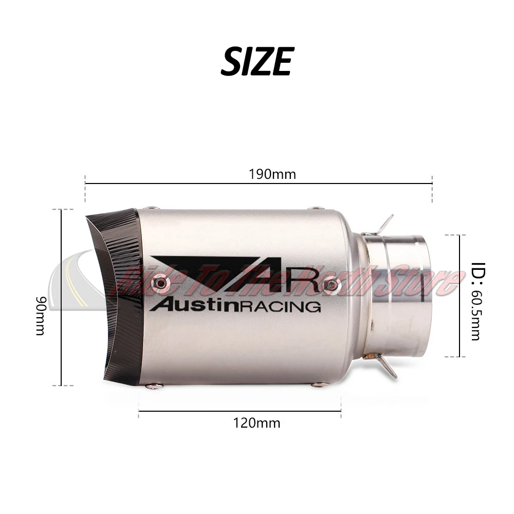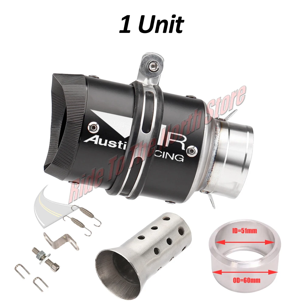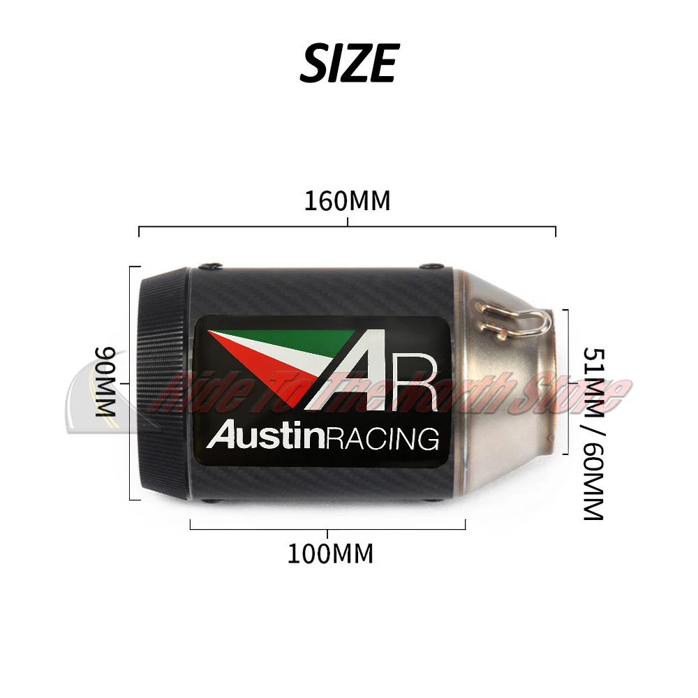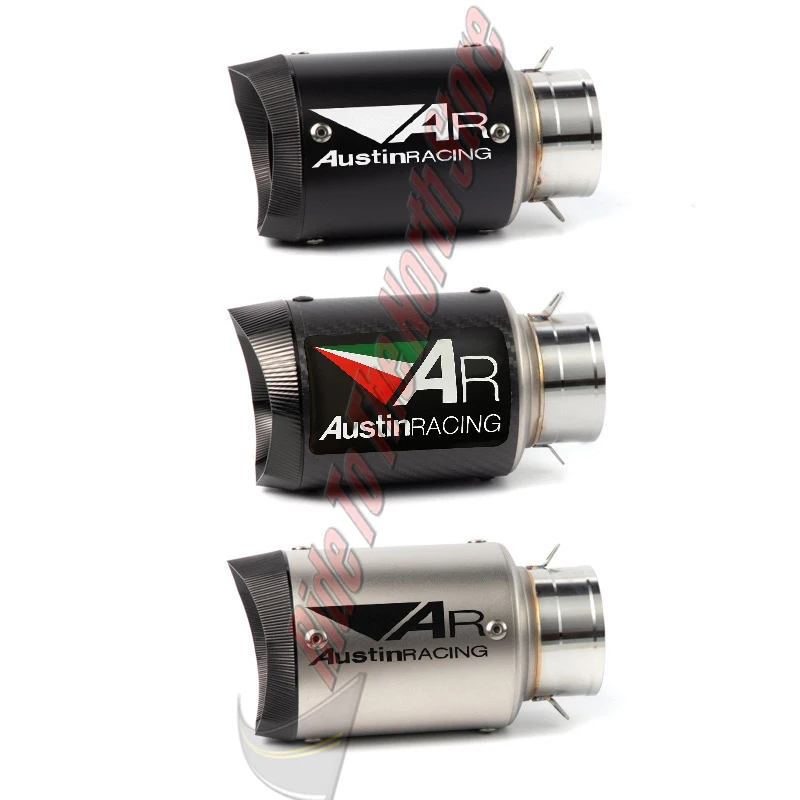 Upgrade your motorcycle’s performance and sound with the AR 51/60mm Austin Racing Exhaust Pipe, designed for sport and naked motorcycles. Compatible with a wide range of bikes, including Ninja 250/400, Z400, Z800, Z900, Z1000, R3, R6, MT07, MT09, Duke 390, GSX250R, ZX6R, CB300R, and S1000RR, this exhaust offers universal fitment for most performance motorcycles. Crafted from high-quality stainless steel and carbon fiber, it ensures durability, heat resistance, and lightweight performance. The GP-style design improves exhaust flow, delivering enhanced throttle response and a deep, aggressive racing sound. Its slip-on construction allows for quick and easy installation without complex modifications. Precision engineering provides a snug fit, reducing vibration and ensuring long-lasting reliability. The carbon fiber shell gives a premium, race-inspired appearance, elevating your bike’s aesthetic. Ideal for both street and track use, it combines style, sound, and performance in one high-quality package. Lightweight yet strong, this exhaust reduces overall bike weight while maintaining durability. Riders can enjoy improved power delivery, enhanced exhaust tone, and professional racing looks with every ride. Perfect for motorcycle enthusiasts seeking a high-performance upgrade that delivers both visual appeal and functional benefits.