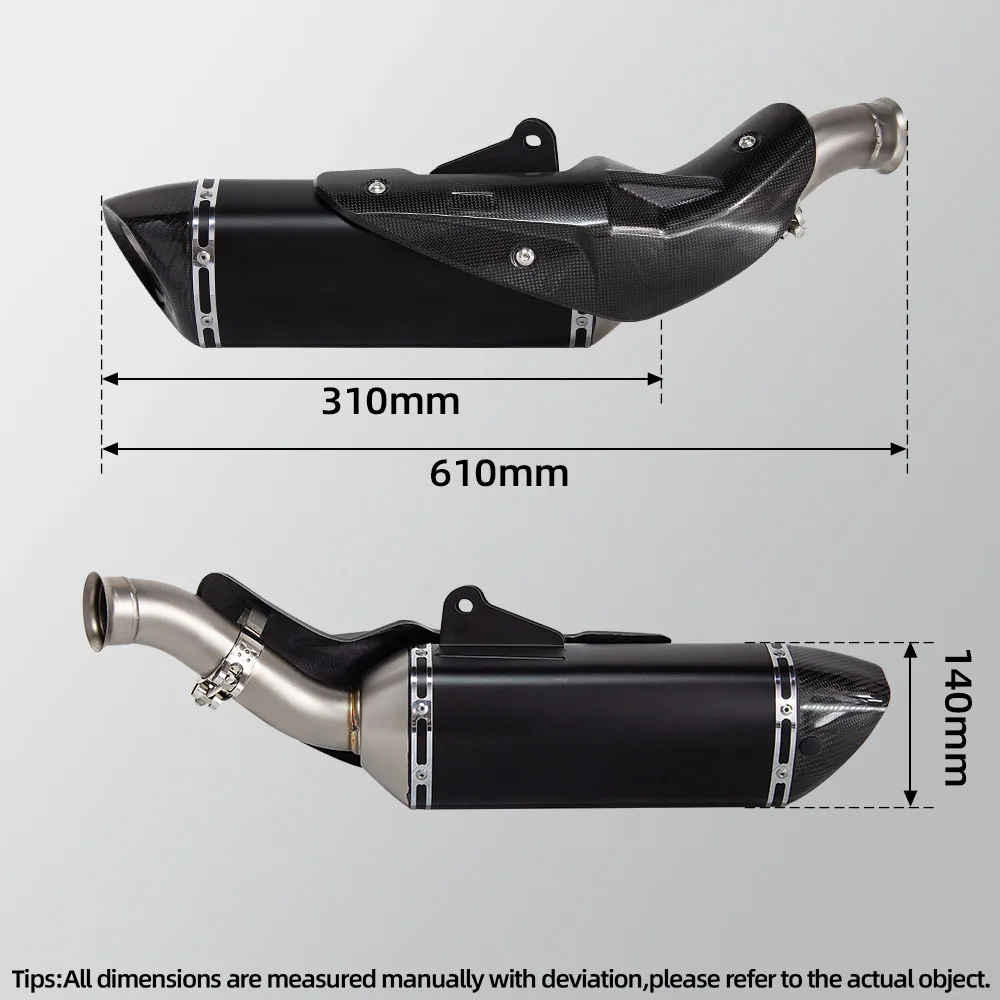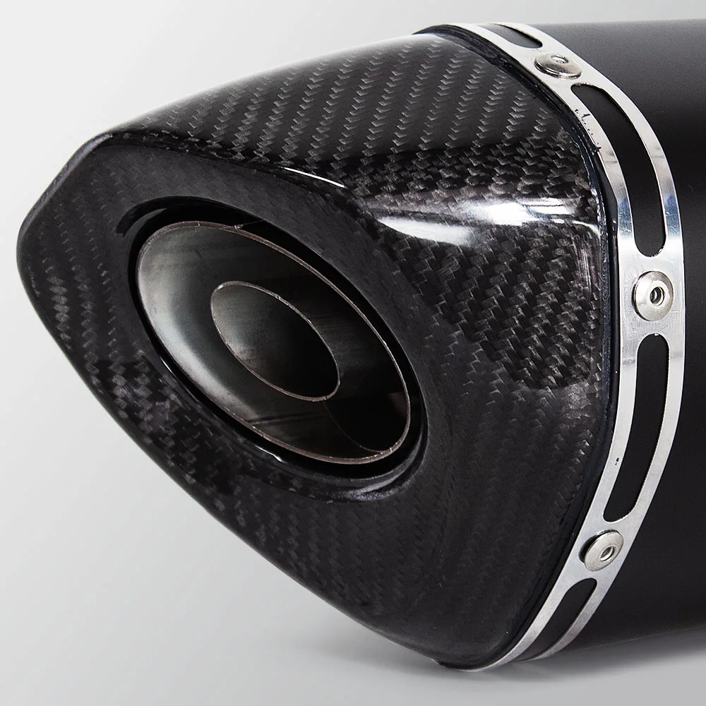 Upgrade your motorcycle’s performance and style with the Carbon Hexagon Motorcycle Muffler with DB Killer, designed for CFMOTO 800NK, 800 NK, and DUKE 790 models. This high-quality slip-on exhaust combines carbon fiber and stainless steel construction for durability, heat resistance, and lightweight performance. Its hexagonal design not only improves airflow but also gives your bike a sleek, aggressive appearance. The included removable DB killer lets you adjust the exhaust sound—from a deep racing roar to a quieter, street-friendly tone. Engineered for easy slip-on installation, it fits seamlessly onto the stock exhaust system without extensive modification. The muffler enhances throttle response and overall exhaust flow, providing a more dynamic riding experience. Its premium finish and precision construction ensure both style and long-lasting performance. Perfect for street or track use, this muffler is ideal for riders who want aggressive sound, lightweight design, and race-inspired aesthetics. Add a professional touch to your bike’s rear end while improving performance with this Carbon Hexagon Slip-On Muffler.