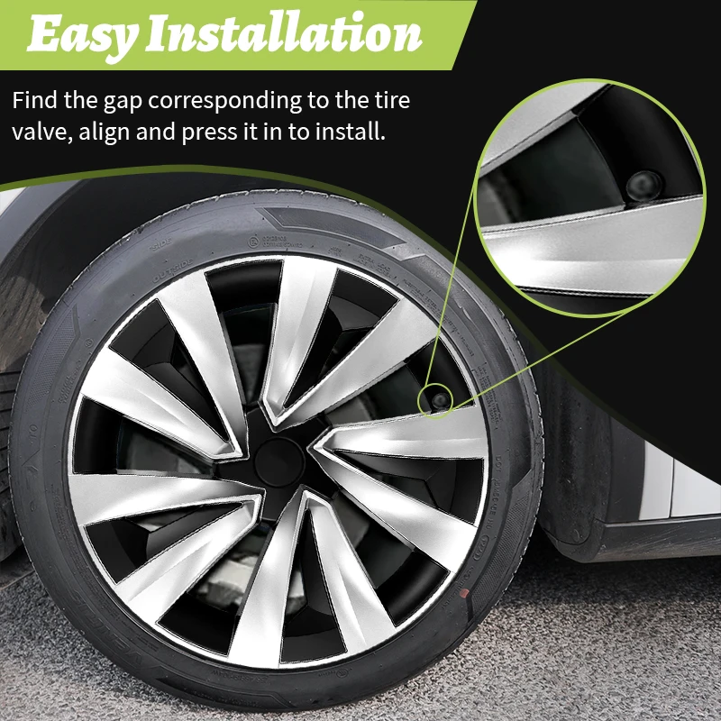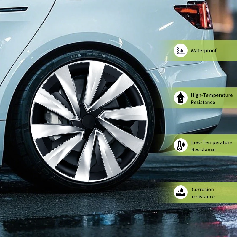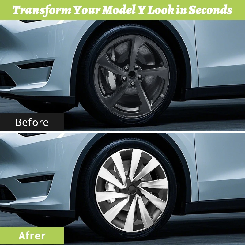 Upgrade your Tesla Model Y Juniper 2025 with this 4-piece set of 19-inch turbine-style wheel caps. These full-coverage hub caps protect your wheels while giving your car a sporty, high-performance look. Durable and easy to install with a snap-on design, they’re perfect for both style and
